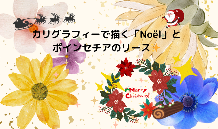 カリグラフィーで描く「Noël」とポインセチアのリース