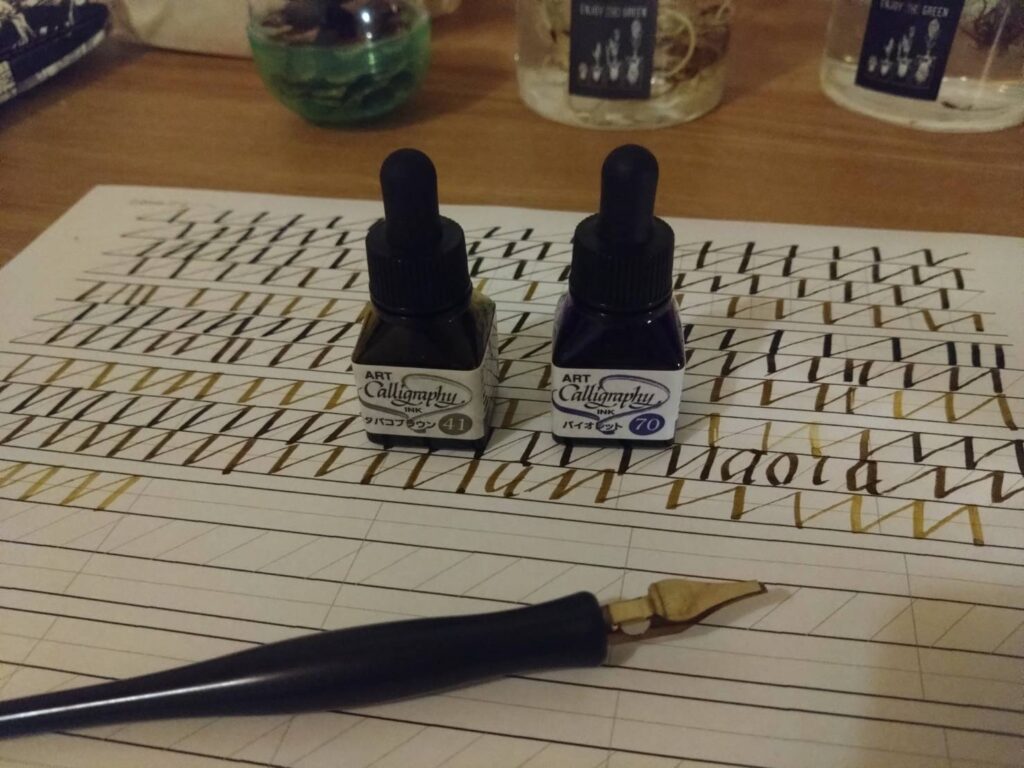 マーカーは手軽に始められますが、興味があるならペンとインクのカリグラフィーもやってみませんか?